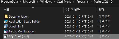 3. C:\Program Files\PostgreSQL\10\scripts\runpsql.bat 또는 이하의 위치의 psql을 실행