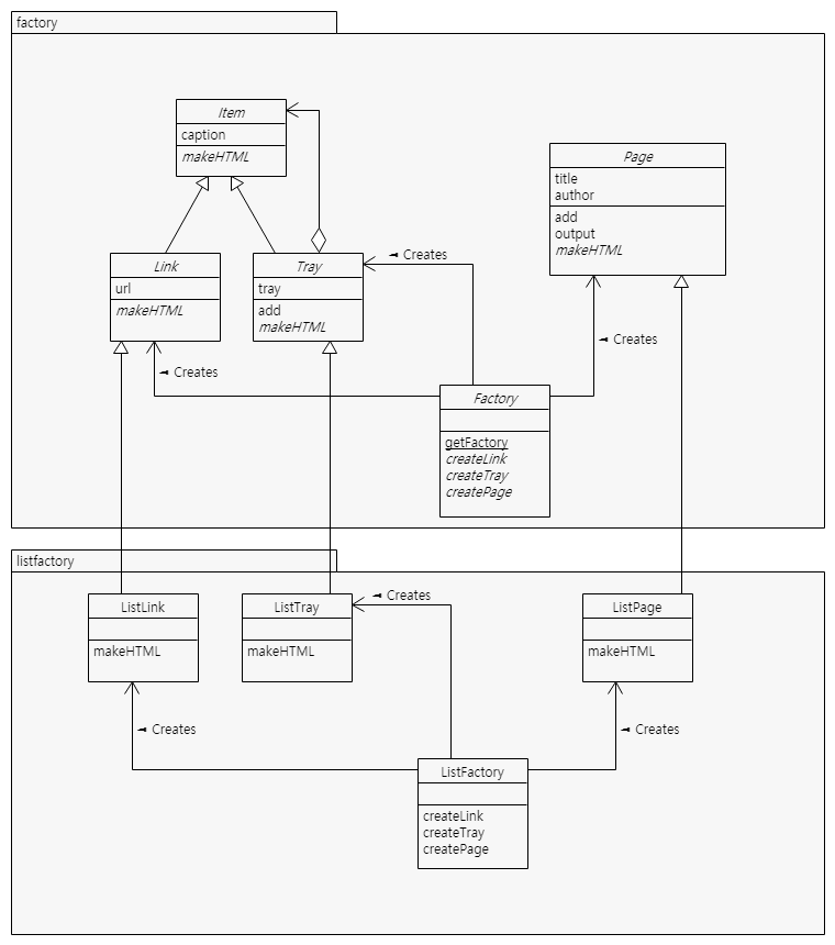 추상 공장을 표현하는 클래스(Link, Tray, Page를 작성) |