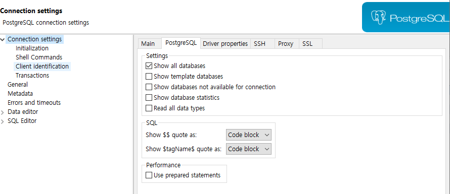 DBeaver에서 PostgreSQL 데이터베이스 접속 설정을 마치면 디폴트로 설정에서 선택한 데이터베이스만 표시됩니다. 그러나 작업 중에는 다른 데이터베이스의 내용을 확인할 필요가 있을 경우가 있습니다.