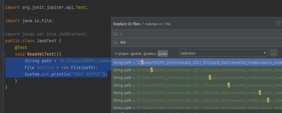 Scope에는 Prject, 현재 열려 있는 파일들, 현재 파일 등 다양한 옵션이 있다.