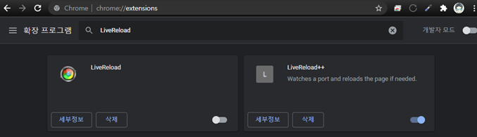 Chrome의 확장 프로그램 검색에서 LiveReload를 검색하면 두 개가 검색되는 데, LiveReload++를 이용한다.